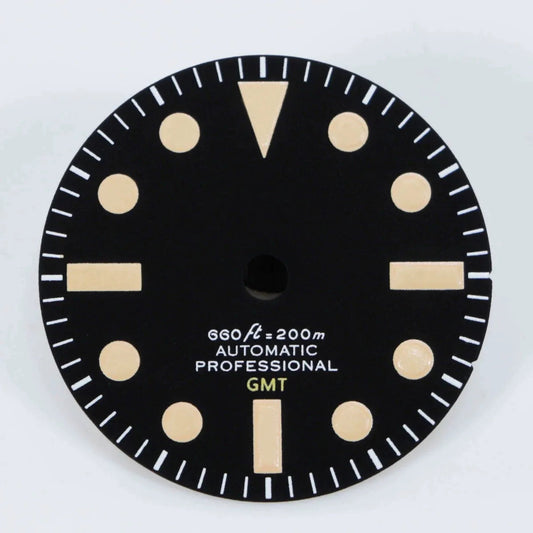 28.5mm GMT Retro Dial NH34A Movement Modified Velvet Black and Green Lume NH34 Modified Dial