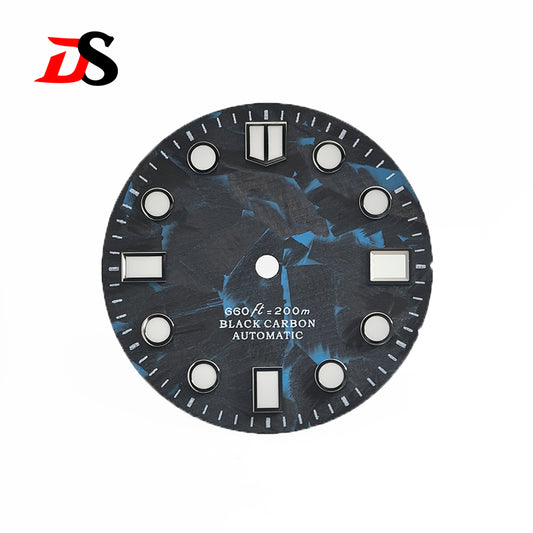 Black Carbon Fiber Dial 28.5mm NH35 Dial Blue Lume MM Index