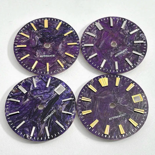 Natural 28.5mm Dial Purple Dragon Crystal Purple Stone No Lume NH38 Movement 3 O'clock Date/No Date