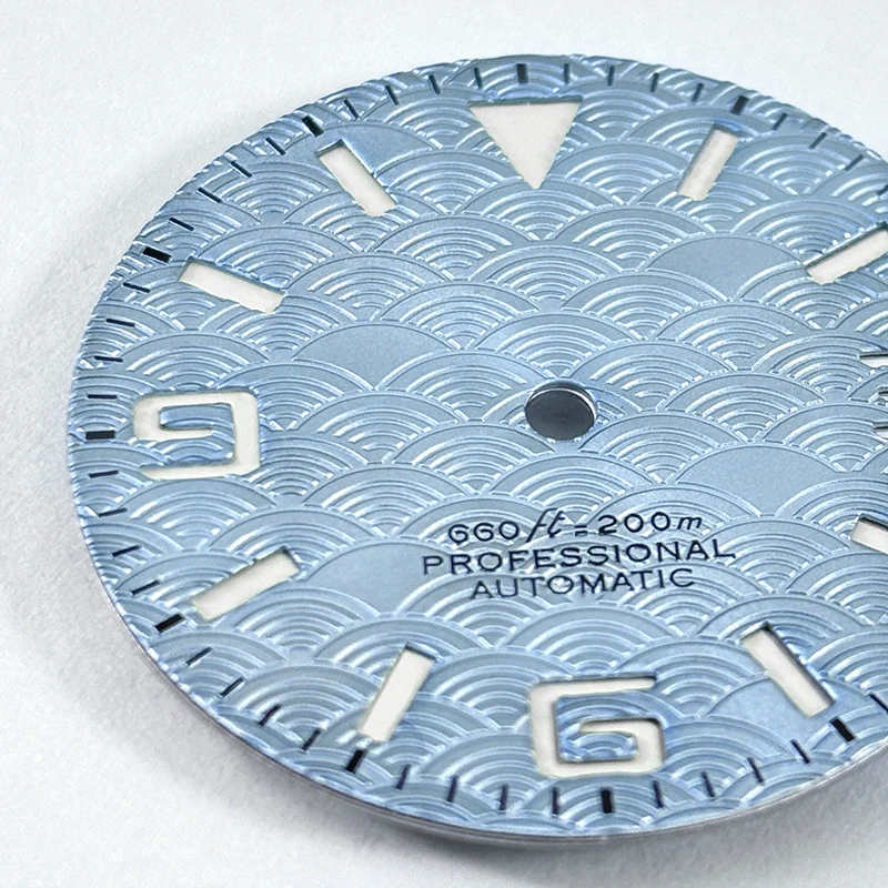 No Date Wave Dial NH38 MOD C1 Green Lume 28.5mm