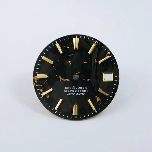 Carbon Fiber Dial 28.5mm NH35 Dial MM Gold Black Lume
