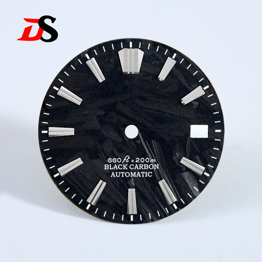 28.5mm Dial YM Index Rich Color Texture Carbon Fiber Dial Black Lume for NH35 Movement No date/3o'clock date