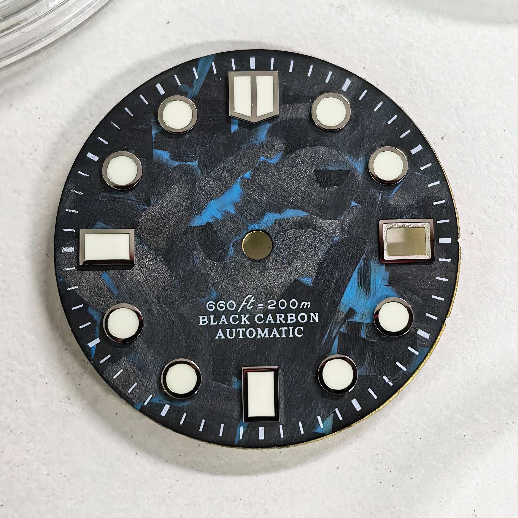 Black Carbon Fiber Dial 28.5mm NH35 Dial Blue Lume MM Index