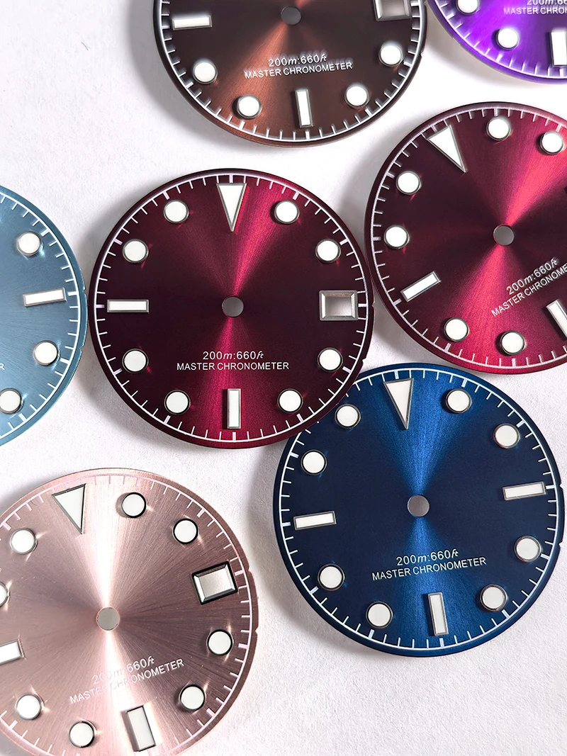 NH35 Sunburst Dial Tu-dor Red Blue Lume Date NH38 NH34 Movement Matte Dial