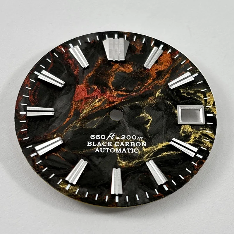 28.5MM Lava Carbon Fiber Dial No Lume Rich Color for NH35NH36 Movement No Date/3o'clock Date
