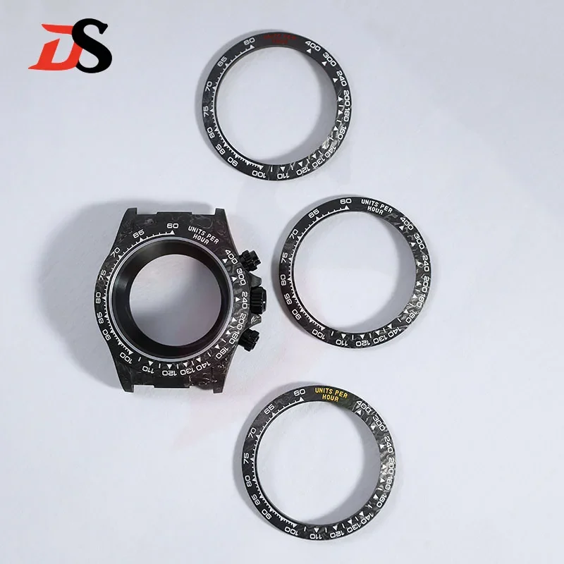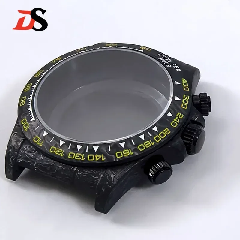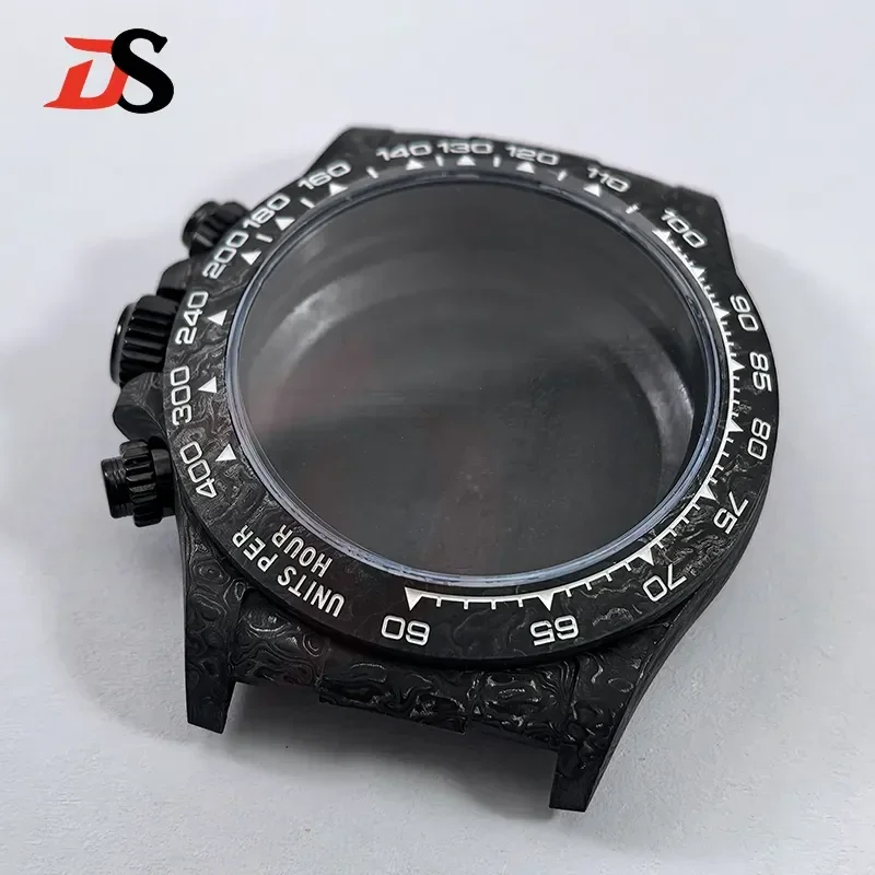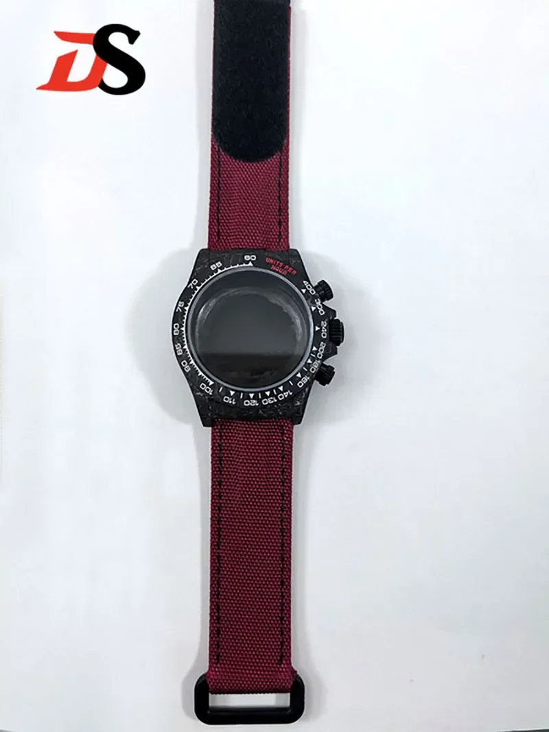 38mm Black Carbon Fiber Case Bracelet Canvas Watch Strap Case 3atm Fit VK63/4130 Movement