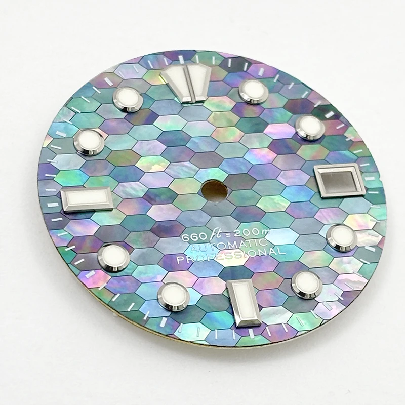 NH35 Dial 28.5mm Mosaic Mother of Pearl 369 Watch Face NH35/NH36 Movement Blue Lume