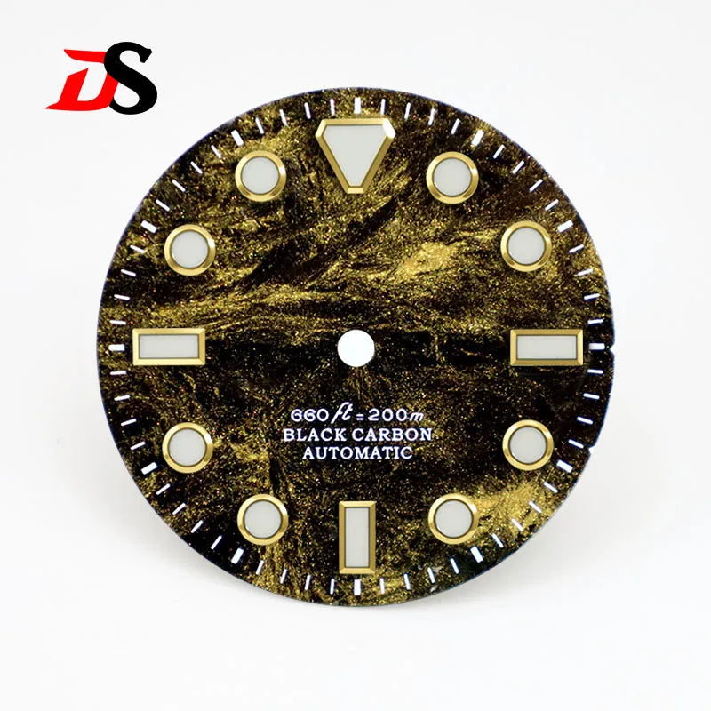 No Date Lava Texture Carbon Fiber Dial Rich Color Blue Lume for NH35 Movement 28.5mm