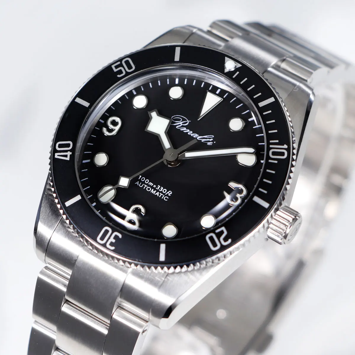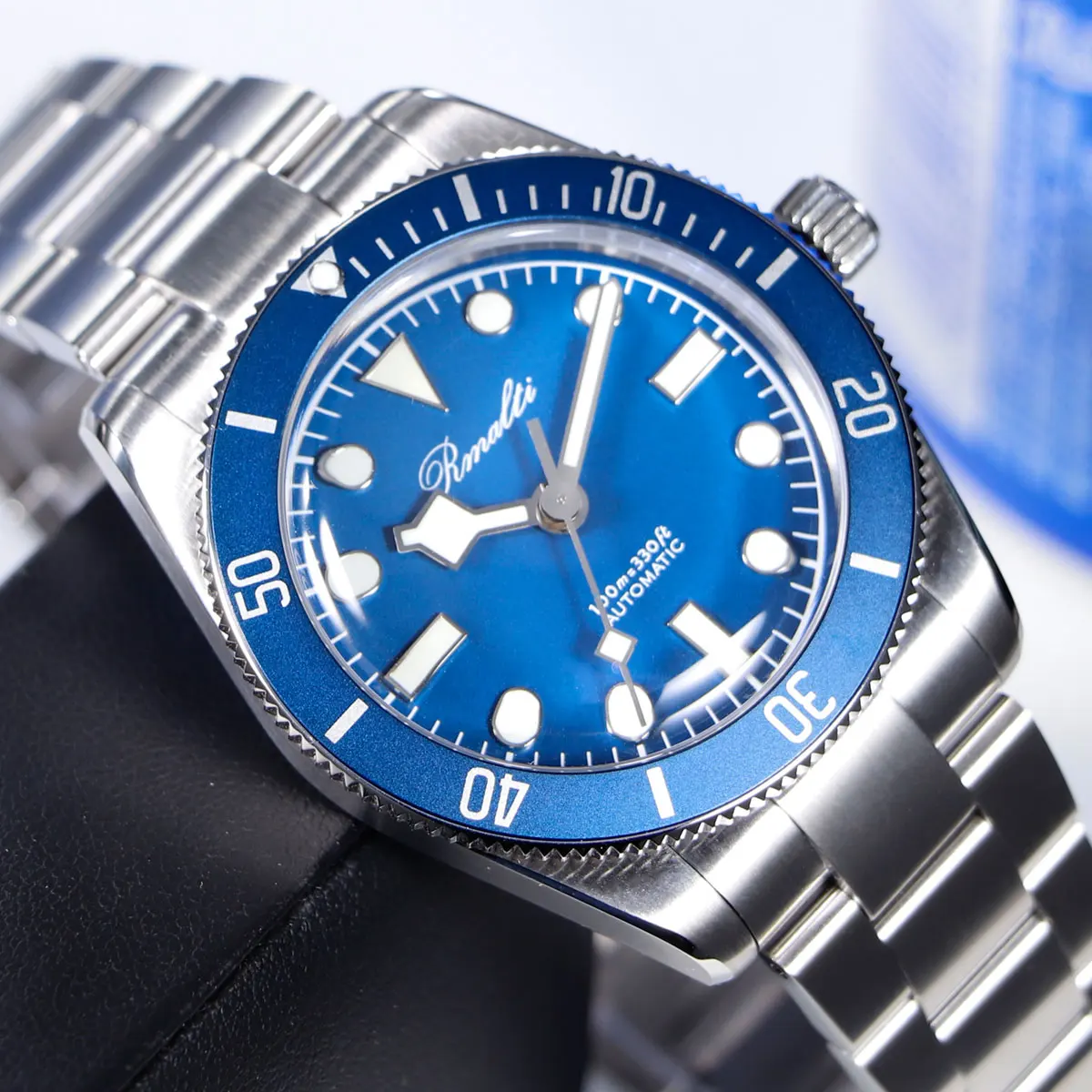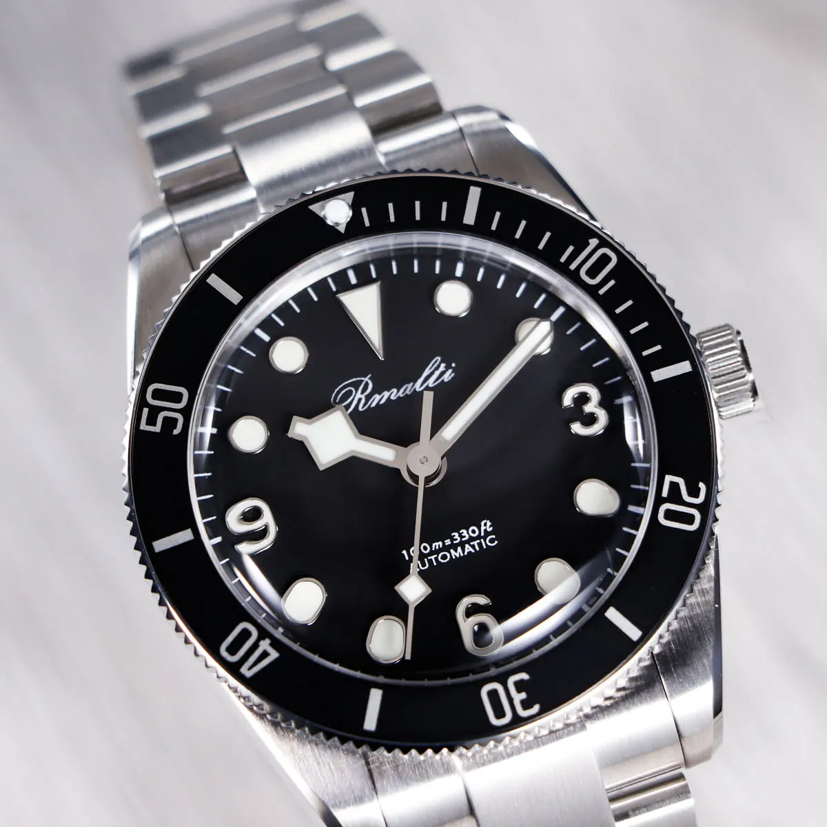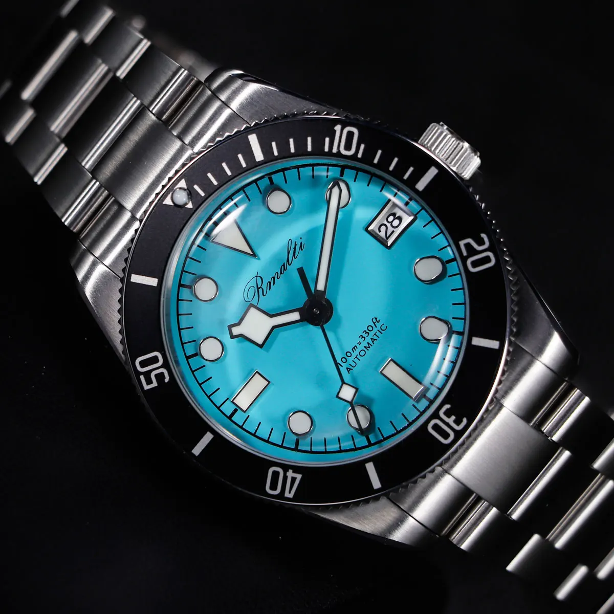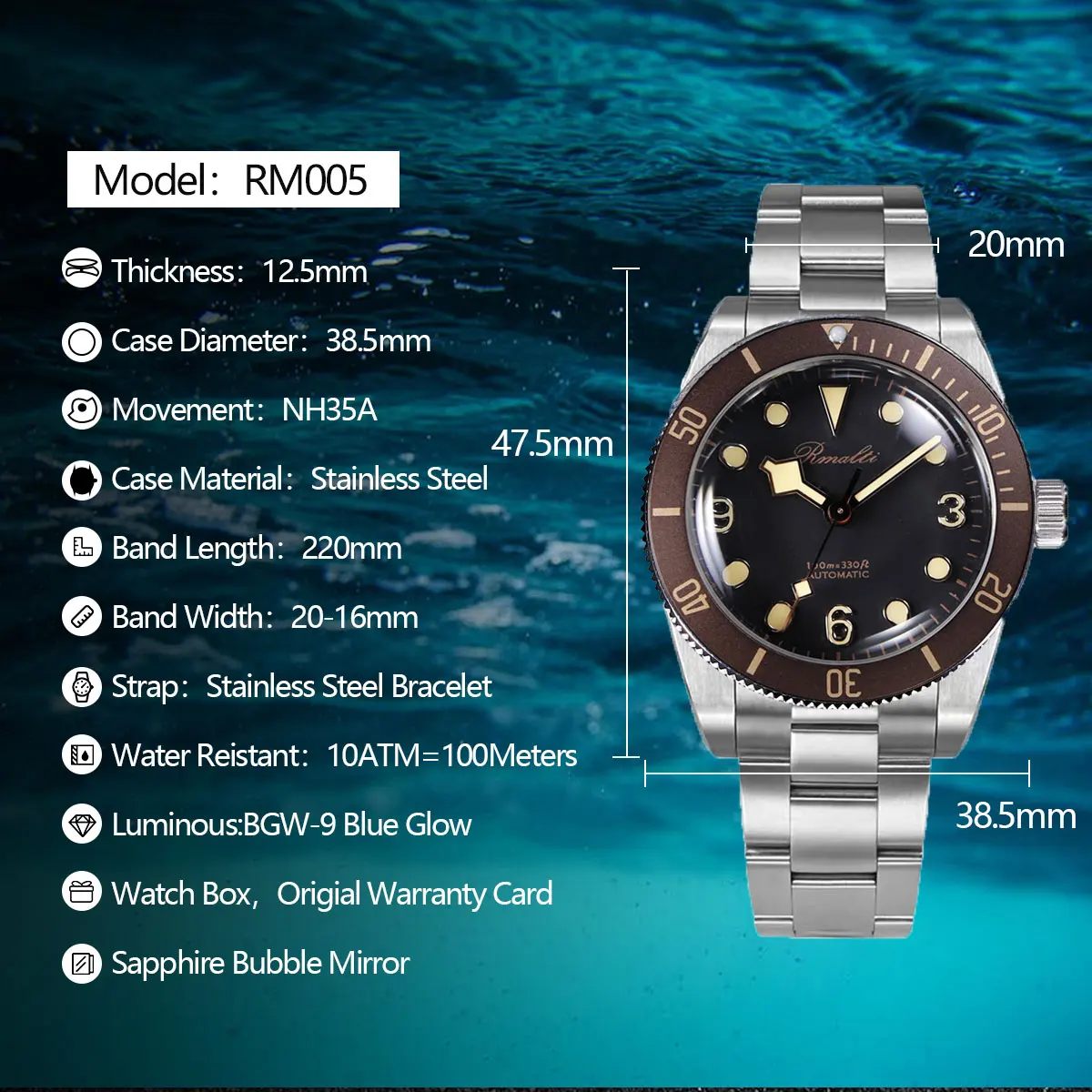 RMALTI 38.5mm Watch Retro Men's Matte Dial Sapphire Bubble Glass NH35 Mechanical Movement 10ATM