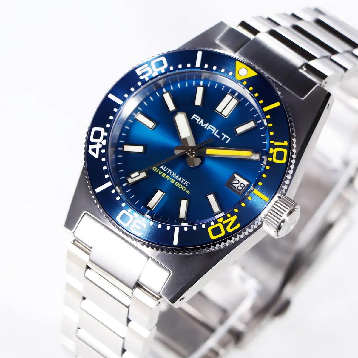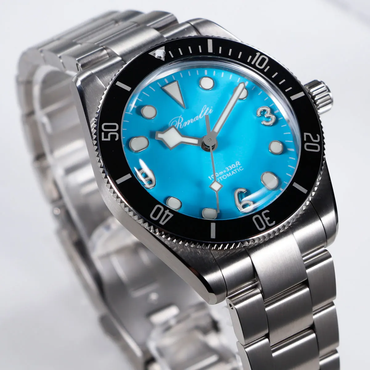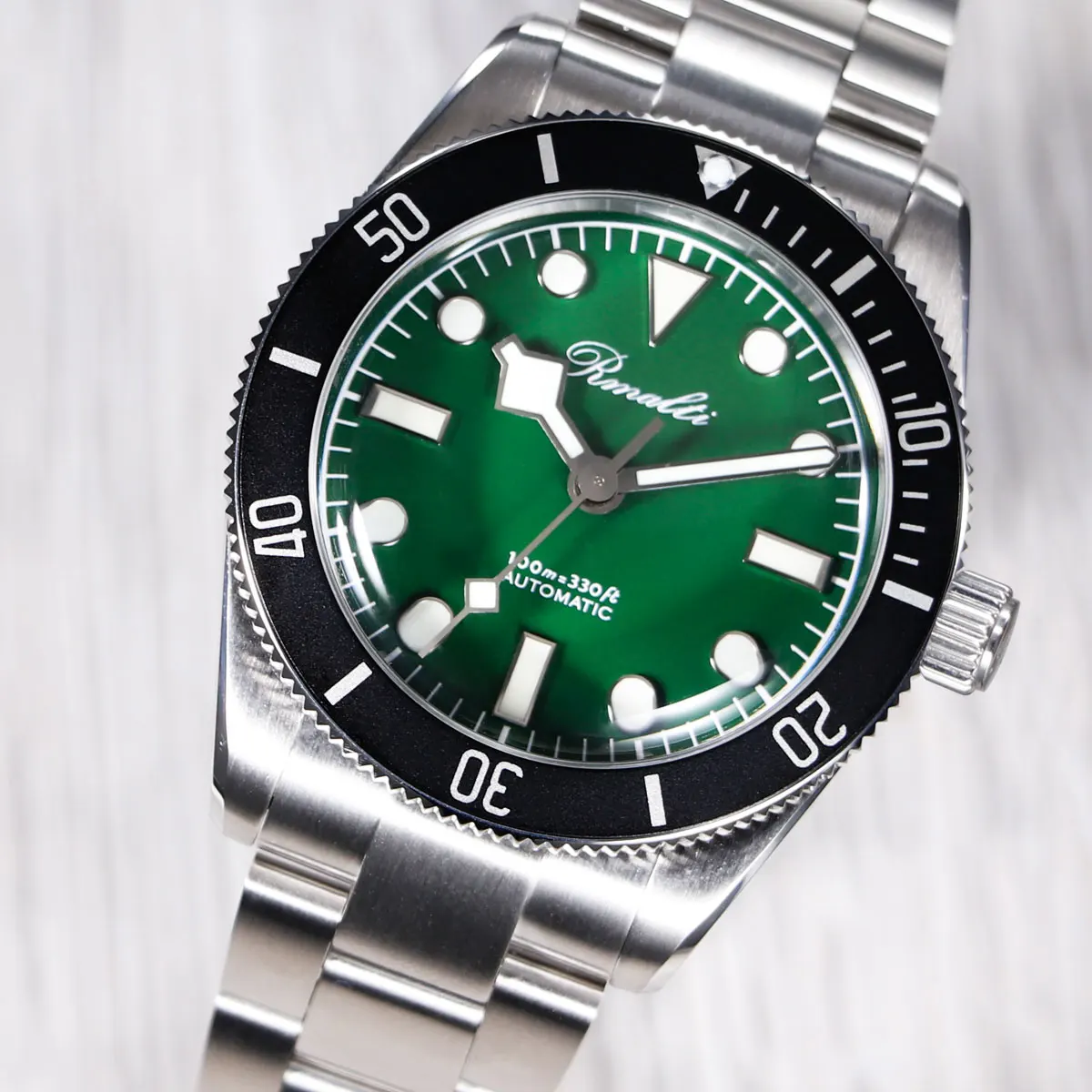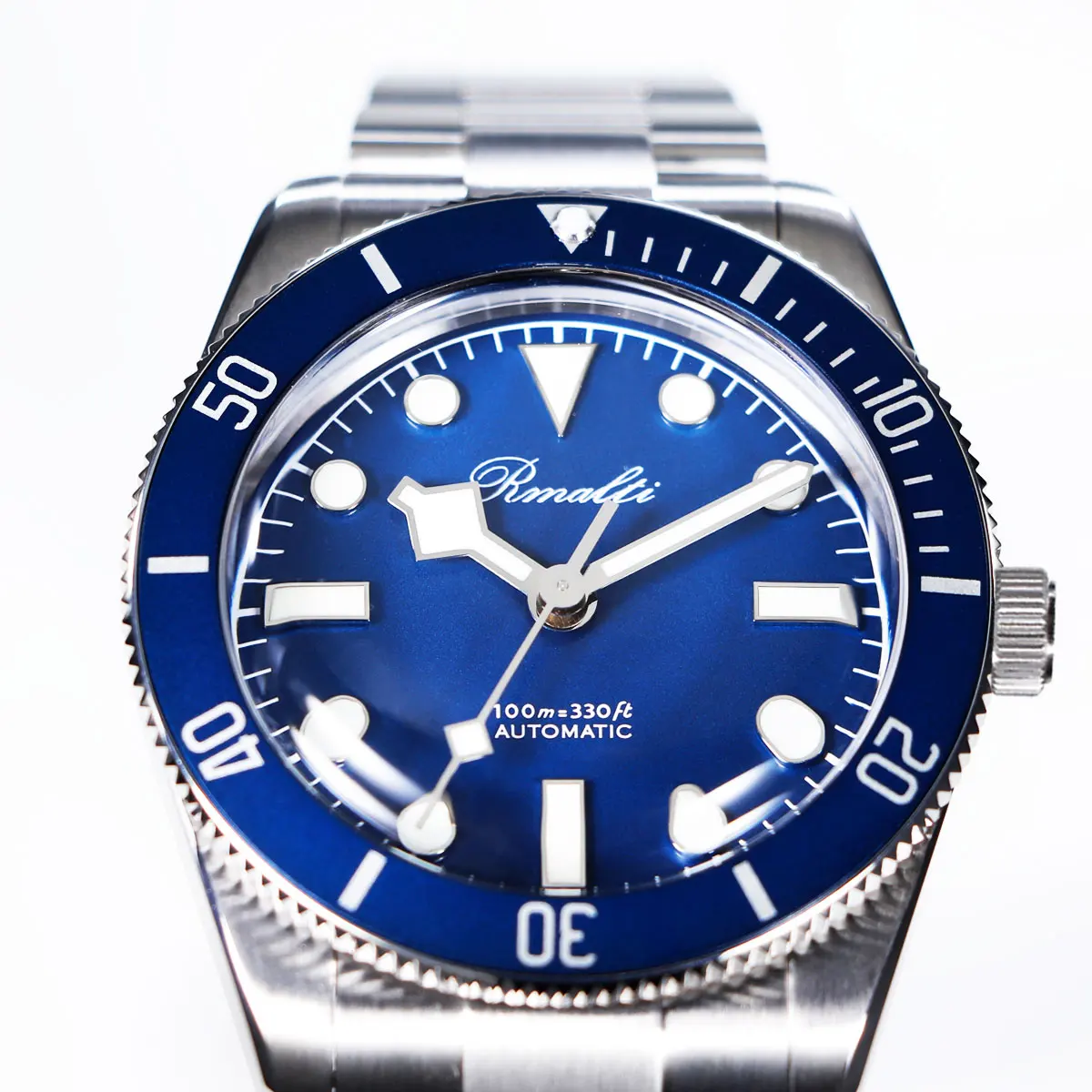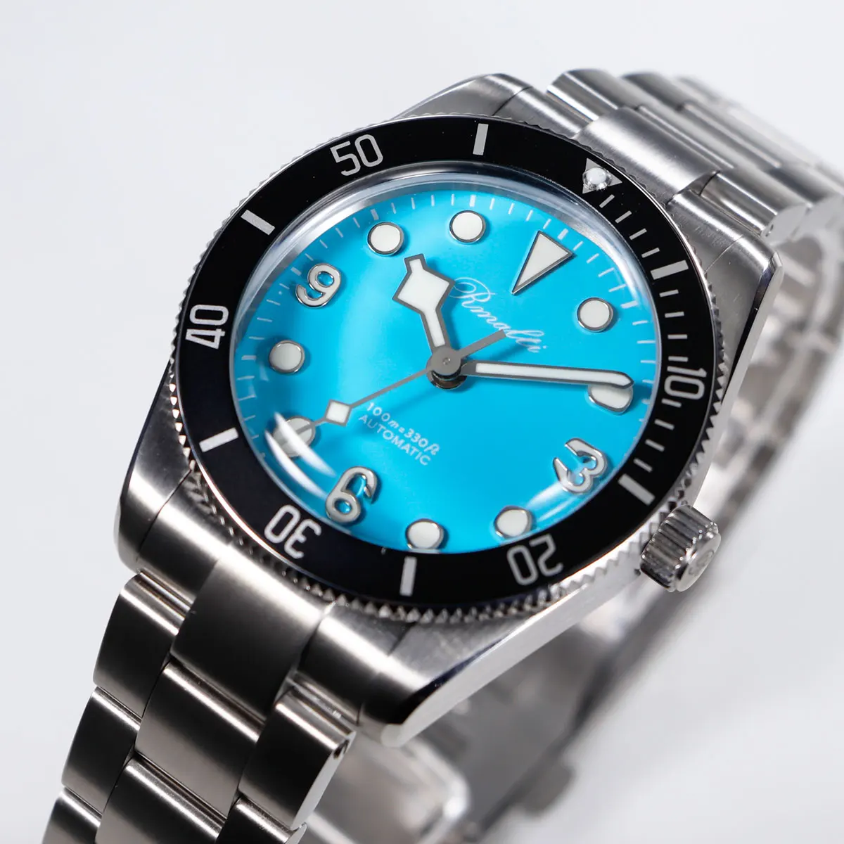 RMALTI 38.5mm Watch Retro Men's Matte Dial Sapphire Bubble Glass NH35 Mechanical Movement 10ATM