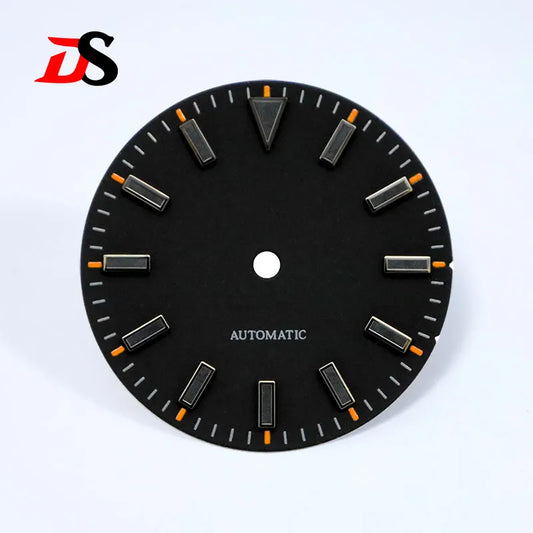 No Date 28.5mm Watch Dial Matte Sunburst Dial Black Lume NH35 Movement