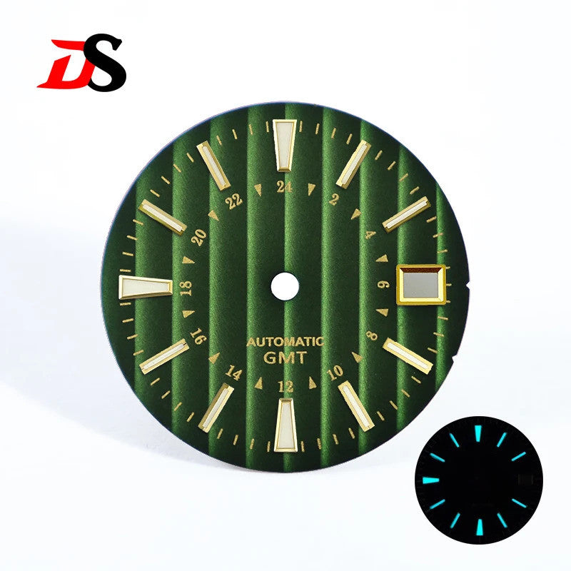NH35 Dial Bamboo Pattern Gold Text 28.5MM Sunburst Blue Lume for NH34 GMT Movement